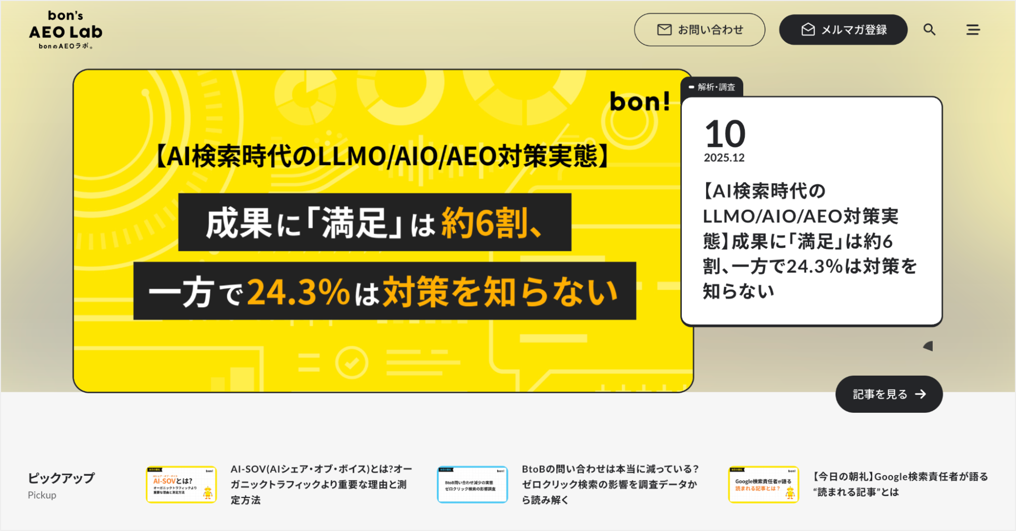 AEOラボでは、AEO(Answer Engine Optimization:回答エンジン最適化)やLLMOに関する情報を発信。AEOの知見を蓄積するため、AEOラボ自体も実験・検証の対象として日々運営しています。