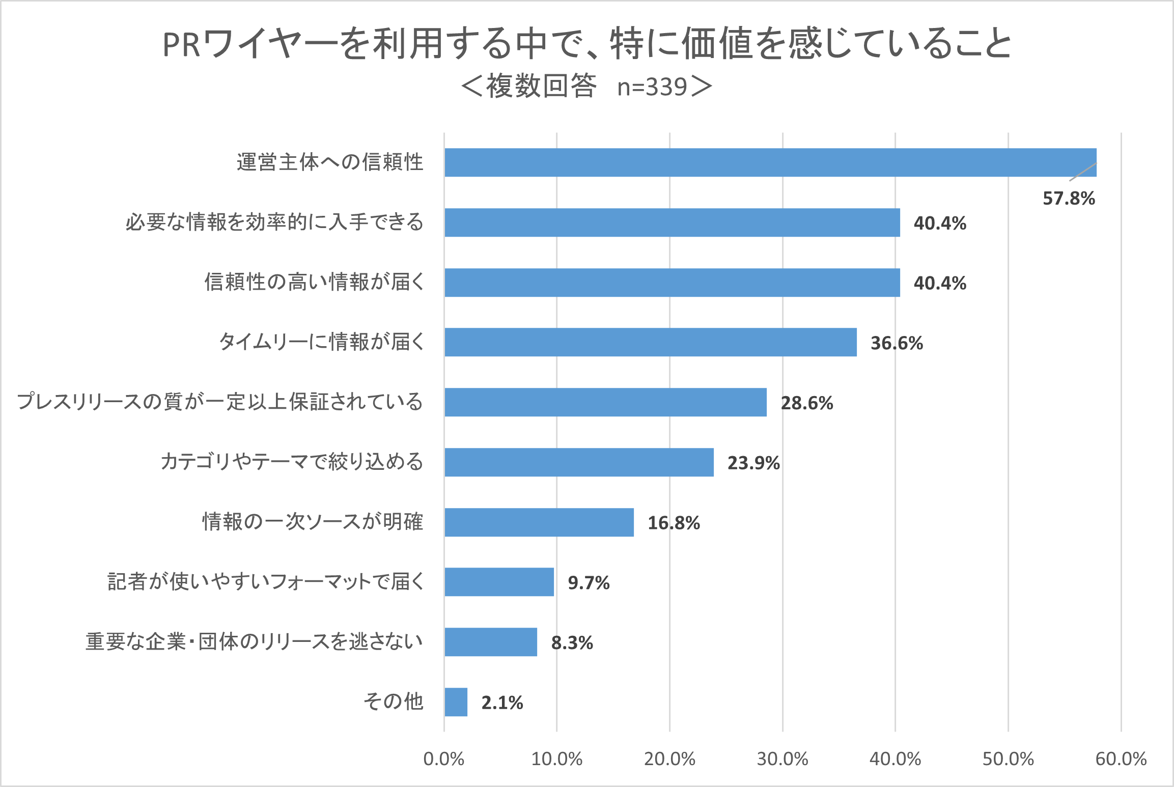 PRワイヤーのプレスリリース配信サービスを利用する中で、「特に価値を感じていること」を伺いました。結果は以下の通りです。
