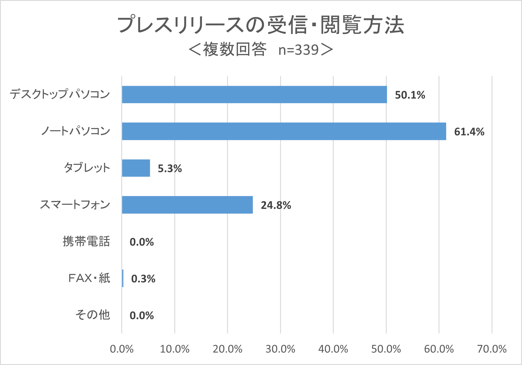 設問「現在、どのような端末(デバイス)で、弊社からのプレスリリースを受信・閲覧されていますか?」について、上位3端末は以下のような結果でした。