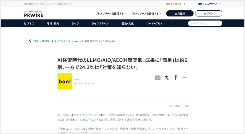 AI検索では、プレスリリースの内容だけでなく、
