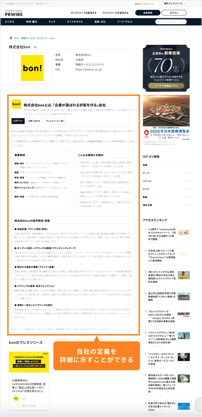 - プレスリリースは出来事(何が起きたか)を伝えるのに強い一方で、企業の全体像(何者か・何が強みか)までは伝えきれないことがあります。企業ページがあることで、AIにも人にも“背景ごと理解してもらう”導線ができます。