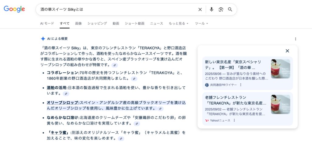 出典:Google検索結果「酒の華スイーツ Silky とは」2025年10月21日閲覧(https://www.google.com/search?client=firefox-b-d&q=酒の華スイーツ%E3%80%80Silkyとは&_fsi=TZJUwKhA)