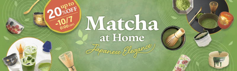 - Details: A curated page featuring matcha-related products and utensils, with limited-time discounts of up to 20% off