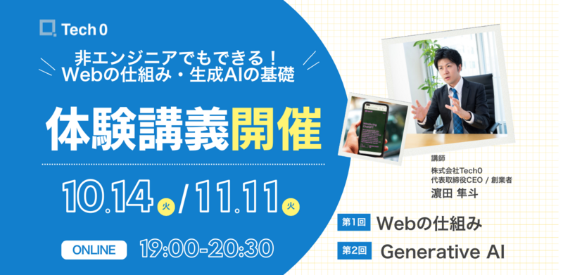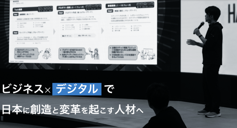 私たちTech0は「ビジネス×テクノロジー人材」の育成を軸に、一人でも多くのビジネスパーソンがテクノロジーを“自分の力”として駆使することで、組織の中から変革が起きていく未来を目指しています。