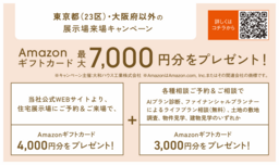 大和ハウス公式ホームページから来場予約の上、来場で、Amazonギフトカード4,000円分。