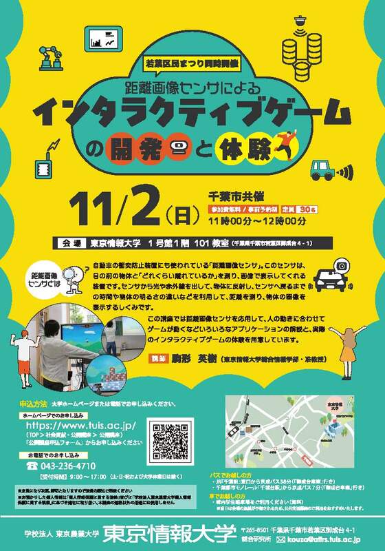 【東京情報大学】11/2(日) 公開講座「距離画像センサによるインタラクティブゲームの開発と体験」を開催