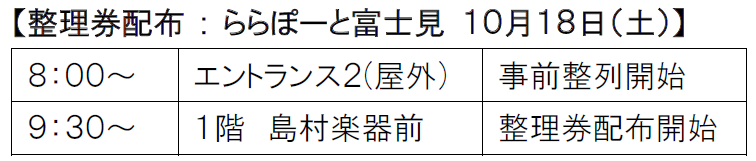 ※整理券の配布は1組につき1枚とさせていただき、30組分が無くなり次第終了となります。