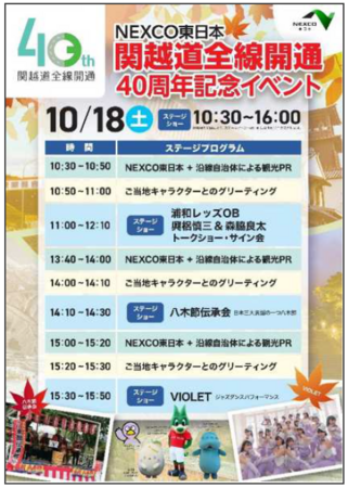 NEXCO東日本関東支社(埼玉県さいたま市)および新潟支社(新潟県新潟市)は、[E17]関越自動車道(以下、「関越道」)全線開通40周年の記念イベントを令和7年10月18日(土)にららぽーと富士見にて開催します。