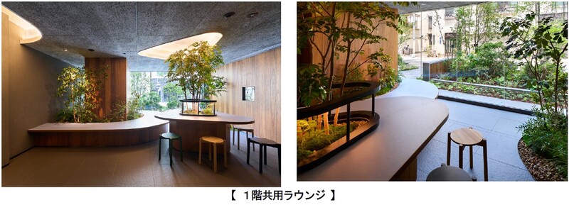 中低層建物が密集する都心の街区に建つため、開口部や色彩の調整により、バルコニーが持つ生活感を和らげ、周辺環境のスケールと穏やかに調和する外観を形成しました。都市生活者が求める、他者の存在を感じながら緩やかな関係性を育む共用ラウンジは、入居者が自由に利用できる空間として設けられています。また、周辺住民にとっても憩いの場となる前面の緑化空間は、都市に共生の風景をもたらしています。