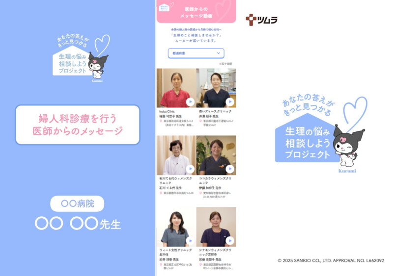 株式会社ツムラ(本社:東京都港区、代表取締役社長CEO:加藤照和、以下ツムラ)は、自分に合った生理の悩みの対策方法を見つけてもらうために、婦人科へ相談することの重要性を啓発する「~あなたの答えがきっと見つかる~生理の悩み相談しようプロジェクト」を、10月19日・国際生理の日を前に、2025年10月15日(水)より始動します。また、本プロジェクトをより広く知ってもらうことを目的とし、イメージキャラクターとして株式会社サンリオのキャラクター「クロミ」を起用いたしました。