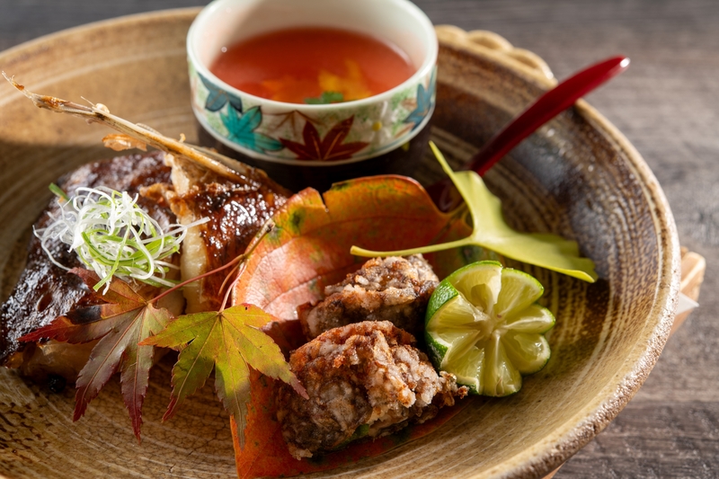 優勝料理:「鯛兜有馬焼き、鯛の玉締め紅葉餡かけ、鯛の竜田揚げ」