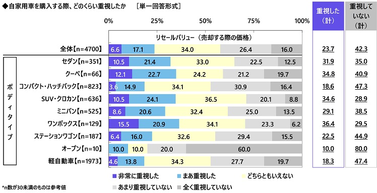 また、≪リセールバリュー(売却する際の価格)≫では『重視した(計)』は23.7%となりました。