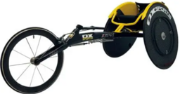 トラックのサーフェイスと競技用車いすとの関係性を知っていただくため、競技用車いすを展示します。車いすは、株式会社オーエックスエンジニアリングから貸出していただきました。