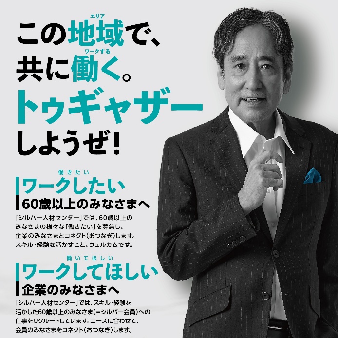 「ワークし(働き)たい、ワークし(働い)てほしい そんな想い…シルバー人材センターがコネクト(お繋ぎ)します」と、ルー大柴さんがメッセージを発信。