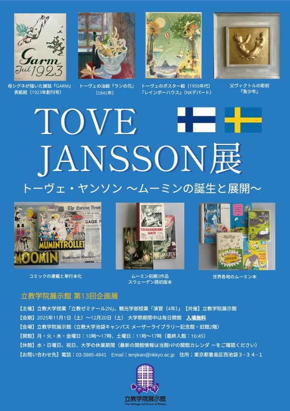 立教大学(東京都豊島区、総長:西原廉太)は、立教大学池袋キャンパス内にある立教学院展示館で、第 13 回企画展「トーヴェ・ヤンソン ~ムーミンの誕生と展開~」(会期:2025 年 11 月 1 日(土)~12 月 20 日(土))を開催します。