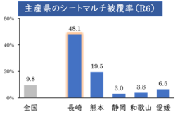 長崎県は全国有数のみかんの産地で、その生産量は全国6位(R6:農林水産省)。みかんを甘くするためのシートマルチ栽培面積は全国でトップクラスとなっており、1㎏あたりの単価は全国第3位とその品質の高さは全国でも高く評価されています。