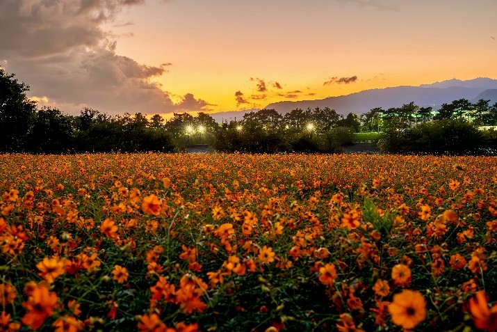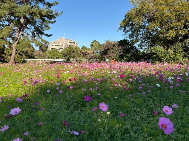 尼崎市内の武庫川河川敷において、10月18日(土)から開園している「武庫川髭の渡しコスモス園」のコスモスが見頃を迎えます。キバナコスモス(3区画)は既に満開を迎えており、白やピンク色などの花が咲くセンセーションを中心とした区画(4区画)は、区画によって差がありますが、今週末にかけて満開に近づくと予想しています。