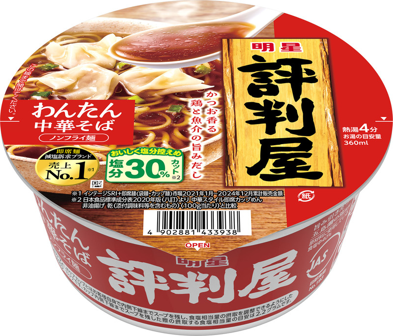 「明星 評判屋」 ブランドは即席めん市場における減塩訴求ブランドNo.1※1の売り上げを誇っています。
