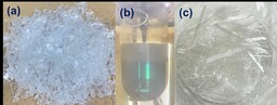 (a)回収したペットボトルをチップ状に砕いた物(リサイクル工場での使用品)。