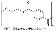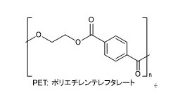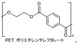 飲料用などのペットボトルやポリエステル繊維などで広く使用されている汎(はん)用プラスチックで、テレフタル酸とエチレングリコールとのエステル結合を基本単位とする。以下の化学構造から成る。
