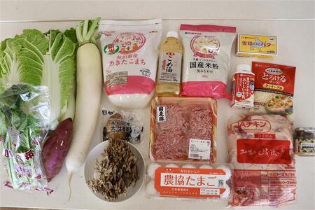 鶏もも肉、農協サラダチキン、ノート、ボールペン、 付箋、カトラリーセット、ペーパーファイル |