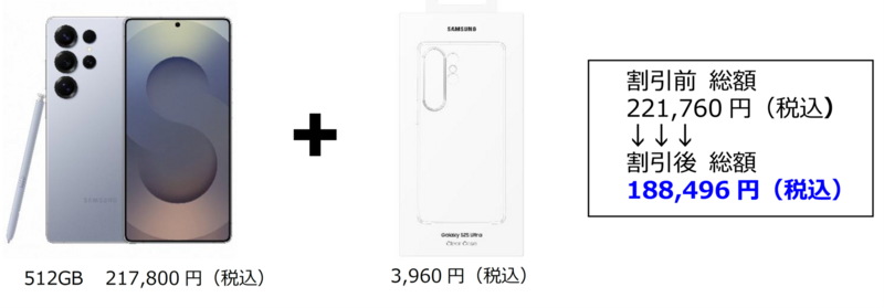 「Samsung Galaxy S25 Ultra」 (512GB)と「Galaxy S25 Ultra Clear Case」をご購入の場合