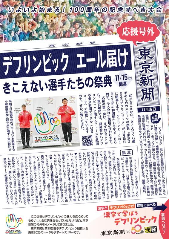 ・配布場所:特設ページ「応援号外 デフリンピック漢字検定」