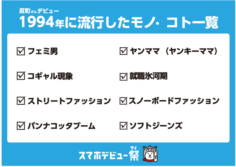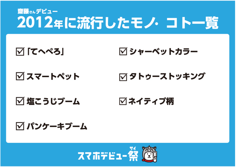 -Q お二人がデビュー当時に流行ったもの・ことの一覧です。 この中で印象に残っている言葉はありますか?
