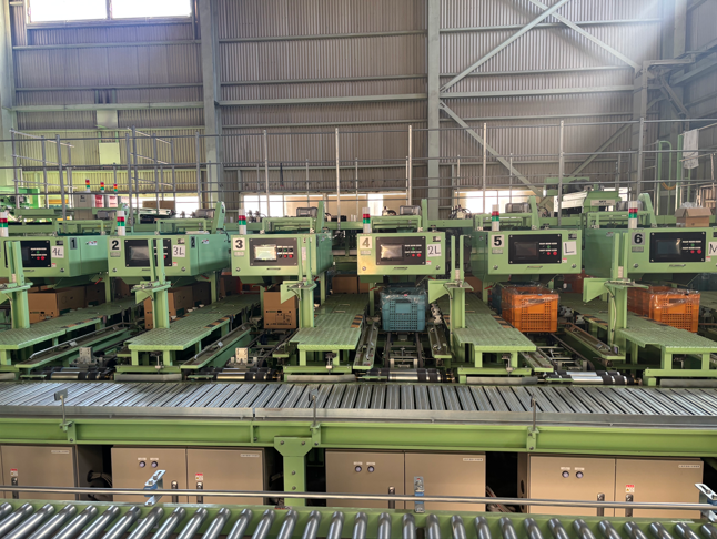 選果場では、欠け・割れなど品質による選別や大きさによる選別が行われます。