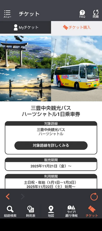 三豊中央観光バス「ハーツシャトル1日乗車券」をモバイルチケットで販売