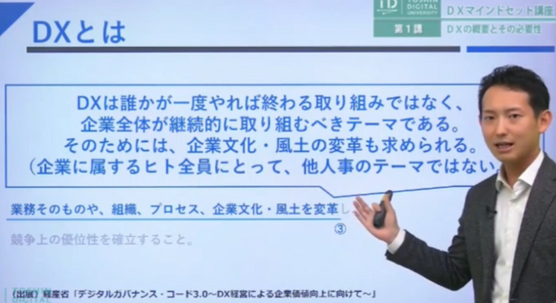 DXを成功させるには、現場の課題を起点とした具体的な変革から始め、失敗を恐れず試行錯誤を繰り返していく姿勢が必要不可欠です。企業のトップから新入社員に至るまで、同じ方向を向いて変革を進めるために、単に講座を提供するだけではなく、企業のご担当者と連携してプログラムの全社員受講修了を推進しています。今後も、デジタル教育の取り組みを通じて、日本の産業界のお役に立てるように努めてまいります。