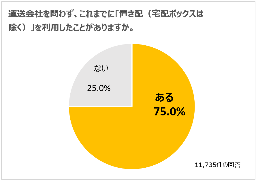 ヤマト運輸に限らず、「これまでに置き配を利用したことがありますか」という質問に対し、75.0%の方が「利用したことがある」と回答し、利用経験率は前年の78.5%からほぼ横ばいの結果でした。
