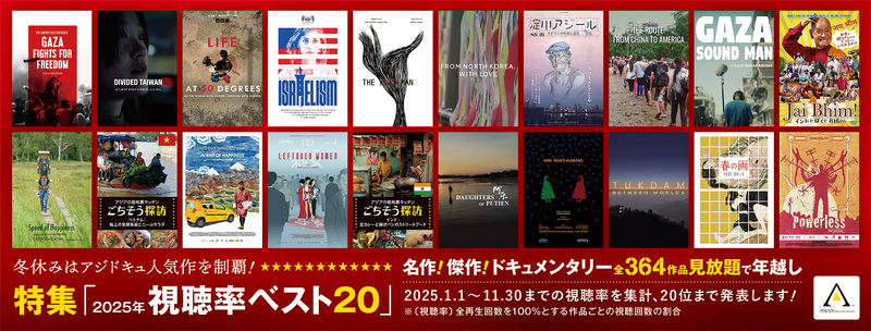 アジアンドキュメンタリーズ 配信ドキュメンタリー映画数364作品の中から2025年視聴率ベスト20を発表!