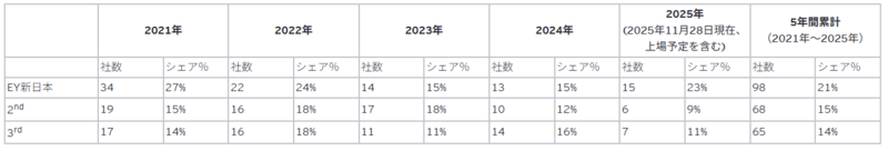 ※2025年上場承認ベース、TOKYO PRO Marketを除く(参考情報:<新規上場会社情報>、各証券取引所ホームページ<2025年11月28日>の承認済データを基にEYが集計)