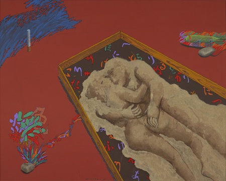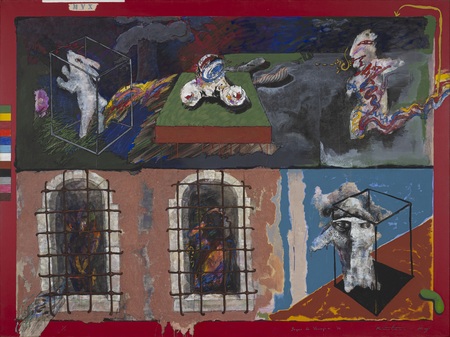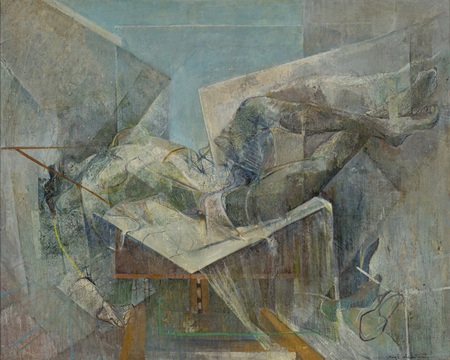 戦後日本美術の新しい潮流の中で東京藝術大学に学んだ絹谷幸二は、《蒼の間隙》(1966年)で、青く沈んだ空間に崩れゆく人体を描き、「永遠に続くものはない」という無常観を表現した。具象と抽象のはざまで模索を重ね、大学院で壁画を専攻。アフレスコ研究を通して、後の「生命とエネルギー」を主題とする独自様式を見せ始めた。