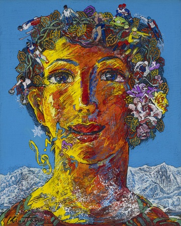 1990年代には公共施設や大学に壁画を制作し、芸術を社会に開く新たな試みを展開。教育者として東京藝術大学で後進の育成にも尽力した。《銀嶺の女神》(1997年)は長野冬季五輪公式ポスターの原画となり、明快な色彩と躍動する構成が国内外で高く評価された。モチーフは家族や平和など普遍的なテーマへと広がっていった。