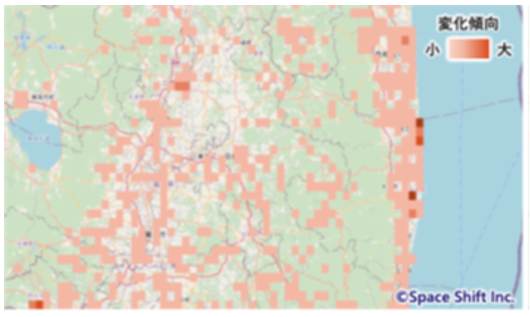 これはスペースシフトのSAR衛星データを用いた建物変化抽出ソリューションを、両社協業のもとジオテクノロジーズの地図整備工程に最適化したことによるものです。