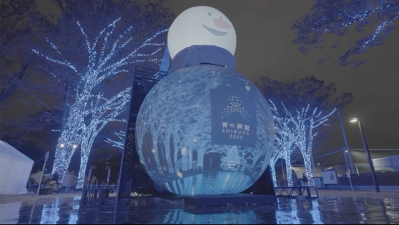 今年の目玉コンテンツは、昨年の『青の洞窟 THE SNOW DOME』で好評を博した球体バルーン演出をさらに進化させた雪だるま型の巨大バルーン『青の洞窟 THE SNOWMAN』。全長約6メートルというその圧倒的なスケールと幻想的な存在感、そしてこの『青の洞窟 THE SNOWMAN』のために制作された、雪や星、オーロラを思わせる幻想的な映像コンテンツが訪れた方々を魅了しています。近年増加している訪日外国人観光客の皆さんも数多く来場されているほか、各方面のメディアからも多数ご取材いただくなど、今年度の『青の洞窟 SHIBUYA』も例年を上回る勢いで大きな盛り上がりを見せています。過去の開催でも、12月半ばからクリスマスにかけてさらに来場者数が増加する傾向にあり、イベントはクリスマスに向けてさらに盛り上がっていく見込みです。