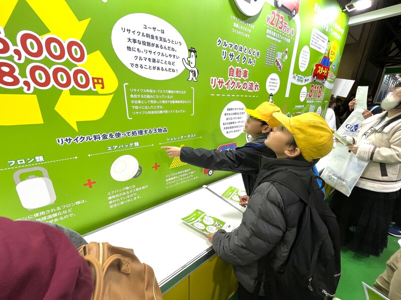 JARC ブースでは自動車のリサイクル制度を学べるクイズラリーや、フロントガラスの製造過程で生じる廃材から作られた絵の具を使用したキーホルダーづくり(ディンプルアート)を実施し、クイズと体験を通じて、ごみの削減と資源の有効利用を目指した自動車リサイクル制度を紹介しました。