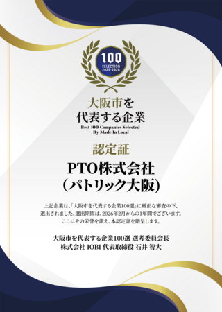PTO株式会社は、2025–2026年度の認定企業として選出されました。