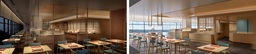 レストランは、総席数110席を誇る、ゆとりある上質なダイニングへと生まれ変わります。大きな長窓を備えた開放的な空間からは、朝はやわらかな陽光とともに熱海市街や相模湾を望み、夜には街の灯りが静かに浮かび上がる、落ち着いた雰囲気をお楽しみいただけます。時間の移ろいとともに刻一刻と変化する景観が、食のひとときに彩りをプラスします。