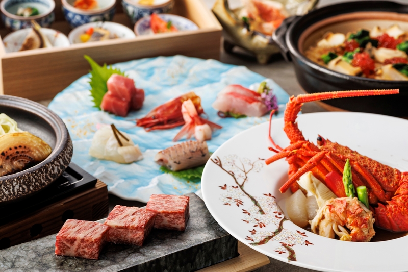 夕食は、季節の食材を活かした本格和食会席をご用意。旬の味わいを一皿一皿丁寧に仕立て、素材の旨みを存分に引き立てた料理の数々をご堪能いただけます。