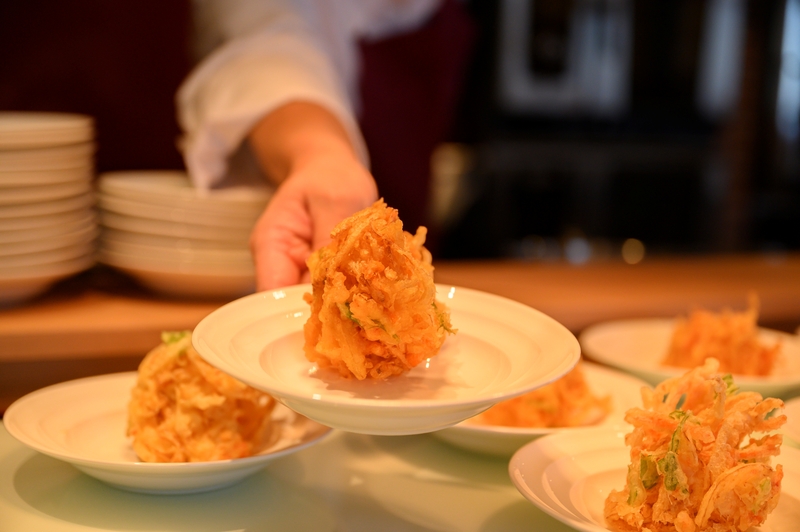朝食は、和洋合わせて約60種類以上を揃えたビュッフェスタイルでご提供。中でも出来立てをご用意するライブキッチンでは、静岡の郷土料理でもある桜えびのかき揚げをはじめ、香草鯵フライ、焼き魚、串焼きなど豊富なラインナップと目の前で調理するライブ感が、活気あふれる朝のひとときをお届けいたします。