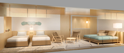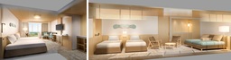 客室は、多様化する宿泊ニーズにお応えするため、ツインルームをトリプル仕様へ改装した客室を中心に、利便性向上を図ります。あわせて、最大5名まで利用可能な客室「デラックスフォース」を新たに整備するほか、和室・和洋室の美装工事も実施。カップルやご夫婦はもちろん、ファミリーやグループまで、幅広い層が快適に利用できる環境を整えます。
