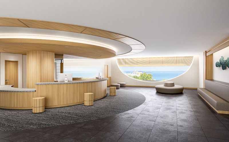 改装のコンセプトは「別邸」。高台から熱海を一望できる当ホテルでは、海から昇る朝日、月に照らされた海景など、刻一刻と移ろう景観や季節の変化を味わうことができます。そんな熱海の絶景を愉しむ非日常な空間にありながら、日常のように居心地の良いひとときを過ごし、またこの場所に帰ってきたくなる、お客様にとっての“別邸”でありたいという思いを込めました。