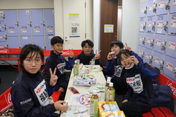 大会の前日には、管理栄養士から選手に向けてスポーツ栄養教室を開催しました。食事が大切な理由や試合前後の栄養補給など試合で活躍できるアスリートの食事について講義しました。選手はメモを取るなど、スポーツと「食の大切さ」について真剣に学ぶ姿が見られました。
