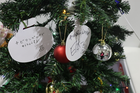 「もぐもぐブース」では選手へ目標記入カードを配布し、今後の夢や目標を書いてもらいクリスマスツリーに展示しました。「チビリンピックで優勝する!」や「中学生の大会でも優勝する!」などのメッセージが集まりました。