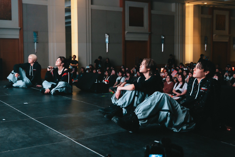 トークコーナーでは、MCを交えてトークを展開。「今最もタイでやりたいことは?」と聞かれると、RYOJIが「チェンマイに行きたい」と即答し、笑いが起きる。コーナーの最後には、タイの挨拶・ワイのポーズを取りながら、「微笑みの国」タイにふさわしい微笑みをしてほしい、というリクエストに従って、メンバーそれぞれが思い思いの表情を披露した。