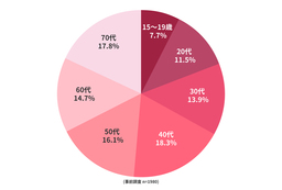 ・世代別では、15~19歳(7.7%)、20代(11.5%)、30代(13.9%)、40代(18.3%)、50代(16.1%)、60代(14.7%)、70代(17.8%)であり、各世代に幅広く存在している。【図表3】
