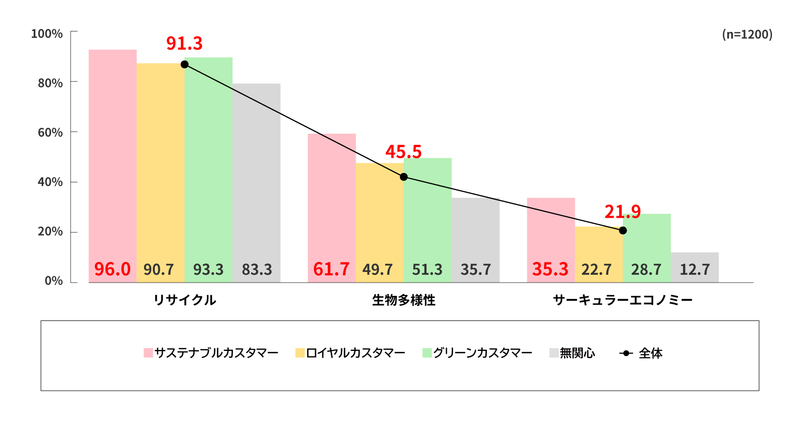 一方で、「生物多様性」では4割強、「サーキュラーエコノミー」では約2割にとどまる。